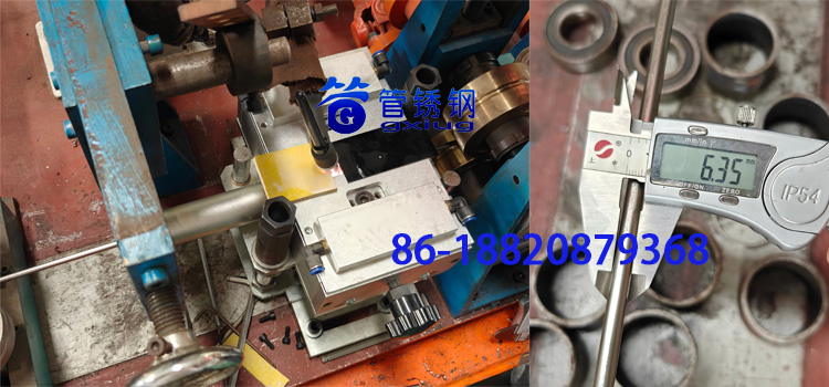 The product being debugged this time is a titanium tube product with a diameter of 6.35mm and a wall thickness of 0.4mm. It adopts argon arc welding sealing protection welding technology. The debugging speed is 12 meters per minute, and the tolerance of the finished pipe material is controlled within ± 0.05mm, which is very standard.